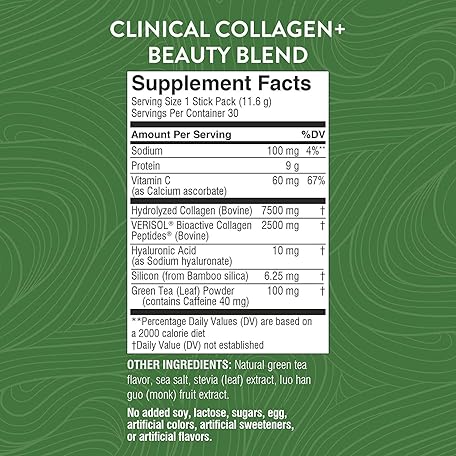 Thông tin sản phẩm Swisse Clinical Collagen+ Beauty Blend | Grass-Fed Collagen, VERISOL® Bioactive Collagen Peptides®, Hyaluronic Acid | Helps Reduce Wrinkles & Increases Skin Elasticity*| Green Tea Flavor | 30 Packets
