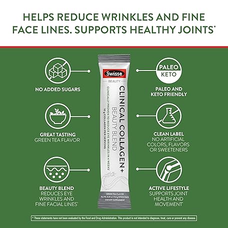 Thương hiệu Swisse là cái tên nổi tiếng được rất nhiều khách hàng trên thế giới chọn lựa. Với kiểu dáng đẹp mắt, sang trọng, sản phẩm Swisse Clinical Collagen+ Beauty Blend | Grass-Fed Collagen, VERISOL® Bioactive Collagen Peptides®, Hyaluronic Acid | Helps Reduce Wrinkles & Increases Skin Elasticity*| Green Tea Flavor | 30 Packets là sự lựa chọn hoàn hảo nếu bạn đang tìm mua một món cho riêng mình.