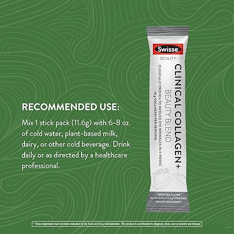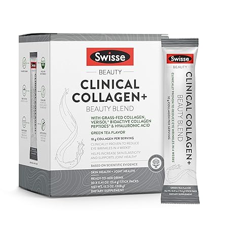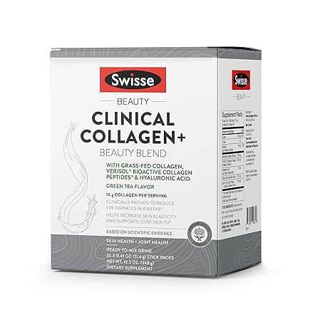 Sản phẩm Swisse Clinical Collagen+ Beauty Blend | Grass-Fed Collagen, VERISOL® Bioactive Collagen Peptides®, Hyaluronic Acid | Helps Reduce Wrinkles & Increases Skin Elasticity*| Green Tea Flavor | 30 Packets đang được bán với giá ưu đãi là 0 tại nước Mỹ.