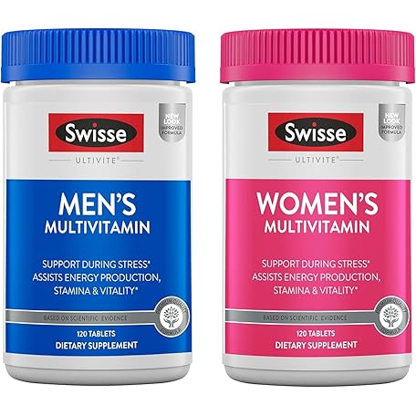 Thông tin sản phẩm Swisse Daily Multivitamin for Men & Women Bundle Combo Pack | Supports Healthy Energy, Stress Relief, Mental Clarity & Performance, Immunity, and Heart Health