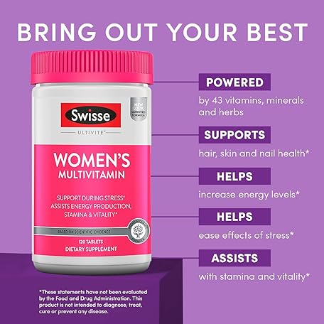 Thông tin sản phẩm Swisse Daily Multivitamin for Women | 47 Vitamins, Antioxidants and Minerals + Adaptogens | Energy, Stress & Immune Support | Womens Multivitamin Supplement | 120 Tablets / 4 Months Supply