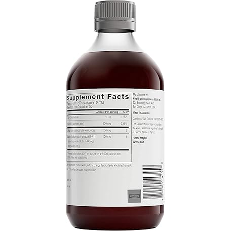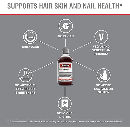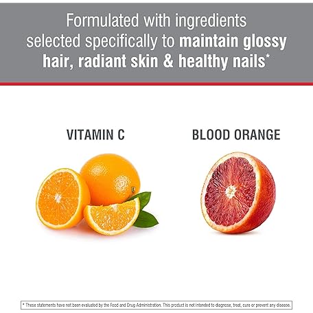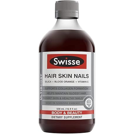 • Swisse Hair Skin and Nails Vitamins for Women | Supports Hair Growth & Collagen Production | Vitamin C, Blood Orange & Silica | Glossy Hair, Radiant Skin and Healthy Nails Supplement | 16.9 fl oz
