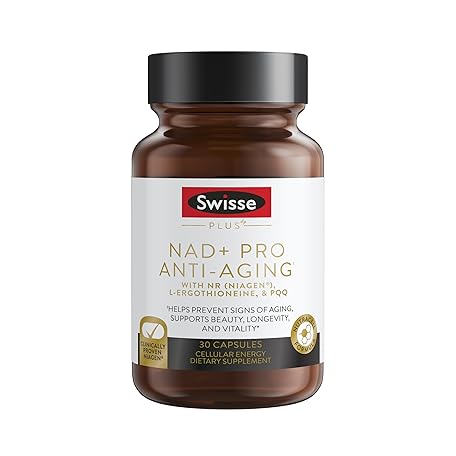 • Swisse NAD+ Pro Anti-Aging | Featuring Clinically Proven 300mg Niagen® | L-Ergothioneine & PQQ | Supports Beauty, Longevity & Vitality | 30 Capsules