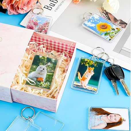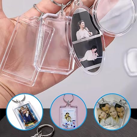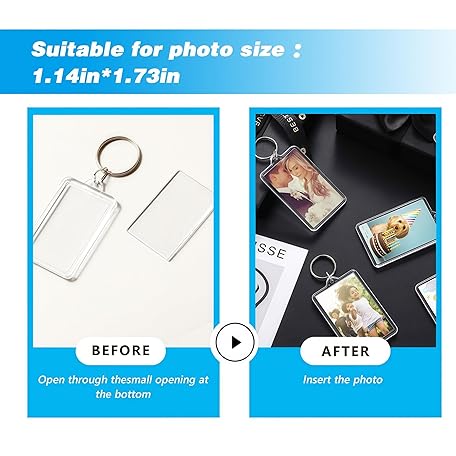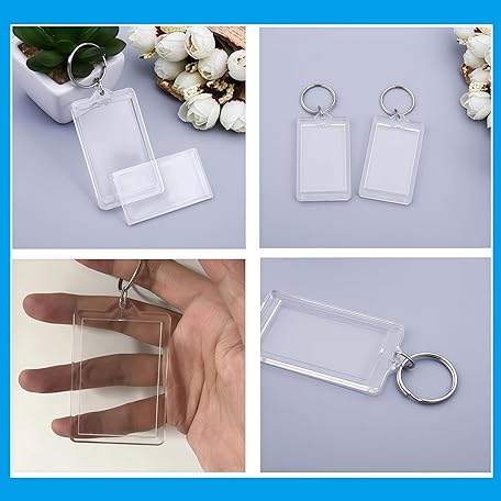• SYBL 10Pcs SMALL SIZE-Rectangle Clear Acrylic Photo Snap-in Keychain Blank Double Sided Custom Personalised Photo Insert Picture Frame Keychain Keyring Holder(1.1 x 1.7 in)