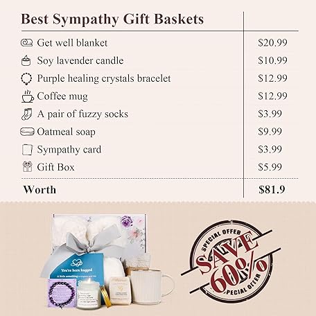 Sympathy Gift Baskets, Care Package for Women, Soothe Grief Sympathy Gifts for Loss of Loved One, Condolences Gift Basket for Loss, Bereavement Miscarriage Gifts for Mothers, Mom, Sister, Friend