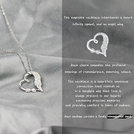 Sản phẩm Sympathy Gifts for Loss of Loved One, Sterling Silver Angel Wing Infinity Heart Pendant Necklace as Memorial Bereavement Condolence Funeral Gifts, In Memory of Loved One Mom Dad Son Husband Miscarriage Necklace đang được bán với giá ưu đãi là $35.9591 tại nước Mỹ.