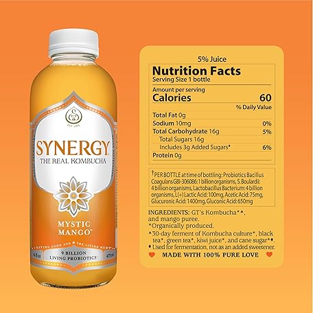SYNERGY The Real Kombucha - Mystic Mango - 16 fl oz Bottle - Raw Probiotic Drink for Gut Health and Immune Support