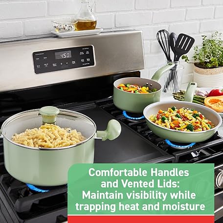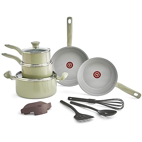 Thông tin sản phẩm T-fal Recycled Ceramic Nonstick Cookware Set 12 Piece, Oven Safe 350F, Pots and Pans, Fry Pan, Kitchen tools, Green