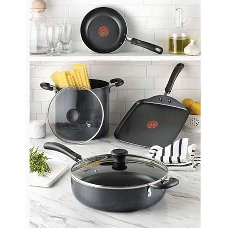 Thông tin sản phẩm T-Fal Specialty Nonstick Saute Pan with Glass Lid 5 Quart, Oven Broiler Safe 350F, Cookware, Deep Frying Pan with Handle, Skillet, Kitchen, Pots and Pans, Dishwasher Safe, Black