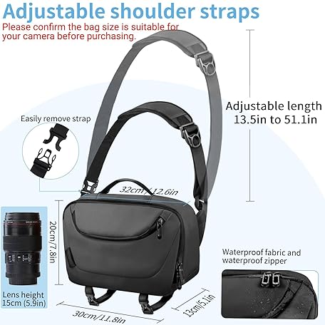 Thông tin sản phẩm TAAOKA Camera Sling Bag,Waterproof Camera Case with Tripod Holder,Lightweight DSLR/SLR/Mirrorless Camera Bags Crossbody for photographers-Black