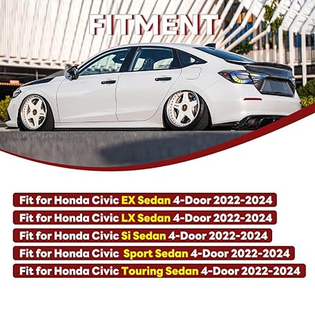 Tail Lights for Honda Civic Sedan 2022-2025 11th Gen Taillights Assemblies Accessories with Startup Animation Multicolored Chase Passenger&Driver Side Rear Lamps Replacement