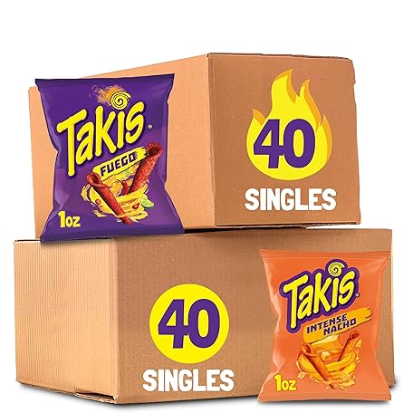 Takis Fuego 80 pc Multipack Flavored Mixed Rolled Tortilla Chips - (40) Fuego Flavor 1 oz and (40) Intense Nacho 1 oz