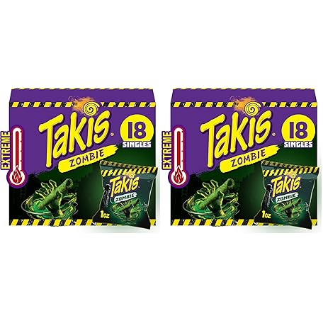 Takis Zombie 18 pc / 1 oz Multipack, Habanero & Cucumber Flavored Extreme Spicy Rolled Tortilla Chips (Pack of 2)
