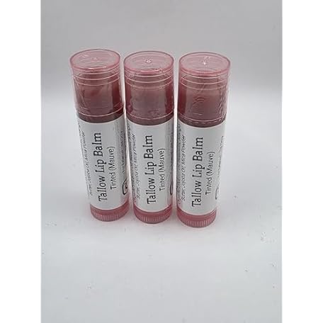 Tallow Lip Balm (3 Pack) (Tinted Mauve) Handmade Grass Fed Beef Tallow Lip Balm with Nourishing Oils