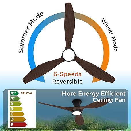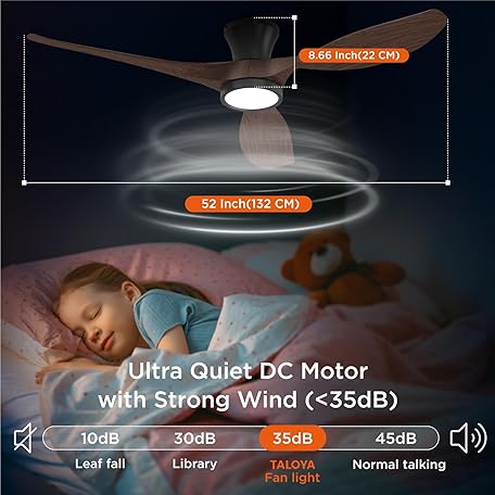 Thông tin sản phẩm TALOYA 52 Inch Ceiling Fans with Led Lights Remote Control Flush Mount Low Profile for Bedroom Farmhouse Patio Outdoor Living Room Kitchen Dining Room,DC Motor,Reversible,Buzzer ON/Off,Black Walnut