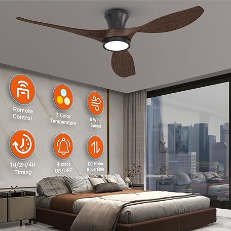 Sản phẩm TALOYA 52 Inch Ceiling Fans with Led Lights Remote Control Flush Mount Low Profile for Bedroom Farmhouse Patio Outdoor Living Room Kitchen Dining Room,DC Motor,Reversible,Buzzer ON/Off,Black Walnut đang được bán với giá ưu đãi là $103.5391 tại nước Mỹ.
