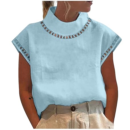 TANGNADE Womens Tshirts Cotton Linen High Neck Cap Sleeve Shirt Summer Fashion Casual Cotton Linen Blouses Trendy Tops