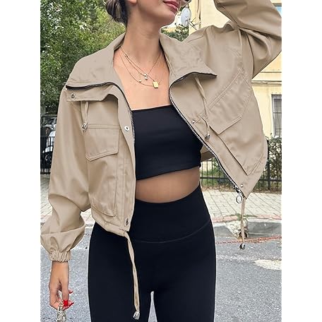 • Tankaneo Womens Cropped Jacket Zip Up Lightweight Oversized Utility Anorak Coat with Pockets