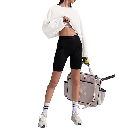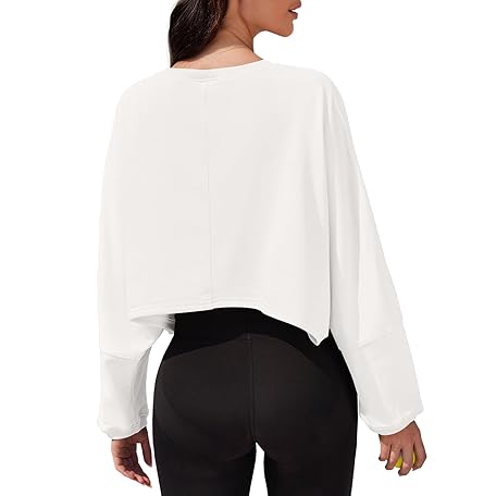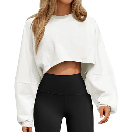 • Tankaneo Womens Long Ballon Sleeve Sweatshirts Tops Cropped Crew Neck Loose Fit Casual Workout Shirts