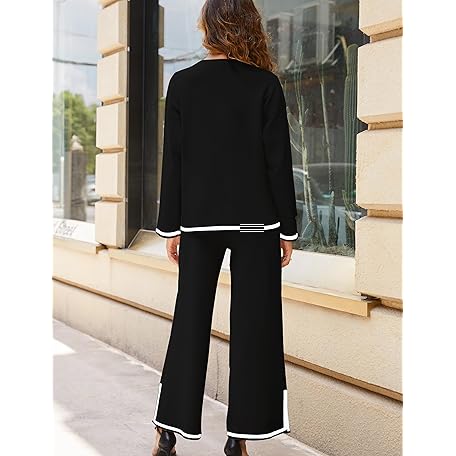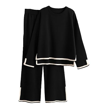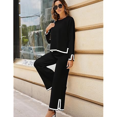 • Tanming Women's 2 Piece Outfits Long Sleeve Knit Sweater Top Wide Leg Pants Lounge Sets Tracksuits