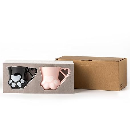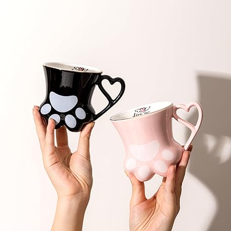 TaoTaojarvie Cat Paw Coffee Mug - Pink and Black Set of 2, Perfect for Cat Lovers, Enjoy Your Coffee with These Cute Cat Paw Mugs, 10oz, Couple&Wedding, Best Festival Gifts(Black&Pink)