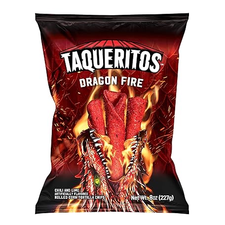 Taqueritos Dragon Fire, Spicy Rolled Corn Tortilla Chips, 8 oz (Pack of 1)