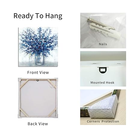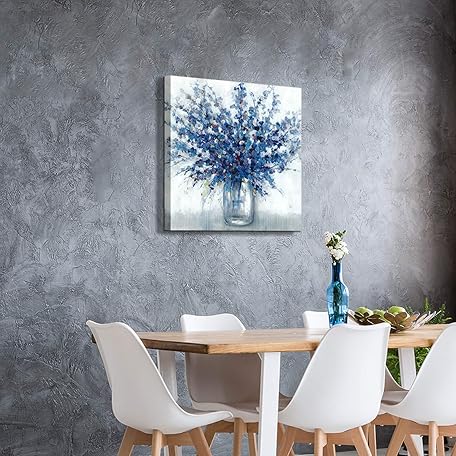 • TAR TAR STUDIO Abstract Bouquet Canvas Wall Art: Blue Flowers in Vase Artwork Print Painting for Living Room Office (24''W x 24''H, Multiple Sizes)