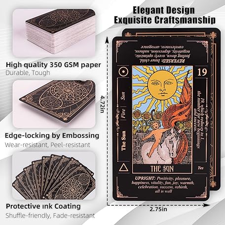 Thông tin sản phẩm Tarot Cards for Beginners, Classic Tarot Cards with Meanings on Them, Durable Tarot Cards with Guide Book for Beginners (Black)