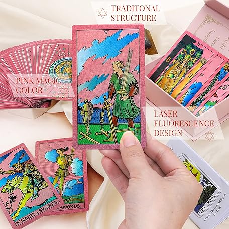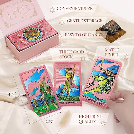Sản phẩm Tarot Cards for Beginners Pink Tarot Cards with Guide Book Gold Foil with Meanings on Them 78 Classic Origina Waterproof Rider Waite Taro Deck Fortune Telling Game(Pink) đang được bán với giá ưu đãi là $17.549 tại nước Mỹ.