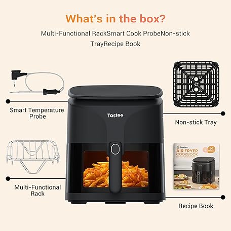 Thông tin sản phẩm Tastee Air Fryer, 8-in-1 Compact 5.5QT AirFryers, 450°F Digital Airfryer Dehydrator with Dual-sensor Smart Probe, 24 Presets One-touch Cooking, In-app Recipes with Window, Dishwasher-safe & Non-stick