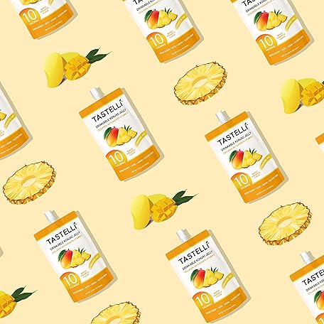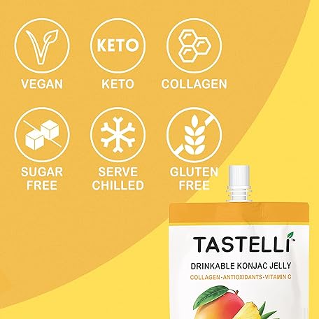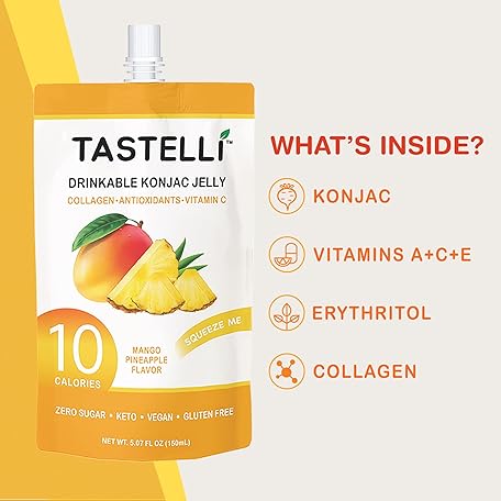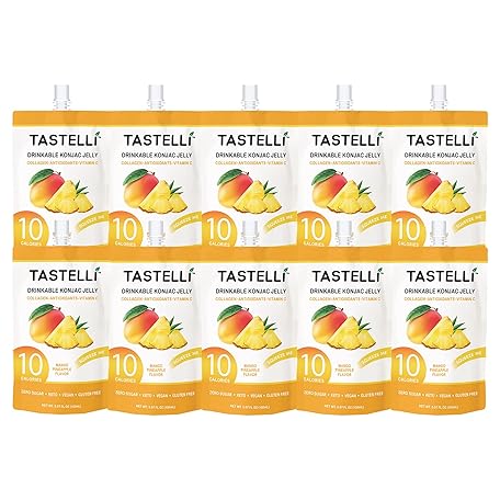 Tastelli Konjac Jelly Infused with Collagen Drink + Vitamin C + Antioxidants / 10 Calories, Vegan, Zero Sugar/Healthy Drinkable Dessert Pouch / (Mango Pineapple) - 150mL x 10 Pouches