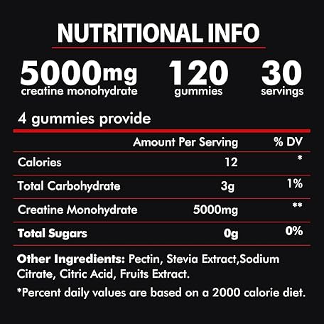 Sản phẩm Tasty Gains Creatine Monohydrate Gummies-5000mg ,Monohydrate Creatine Gummies For Women,Instantized Creatine For Women,Pre Workout Supplement For Men,Muscle Recovery Vegan (120 Count Mixed Berry) đang được bán với giá ưu đãi là $23.9691 tại nước Mỹ.