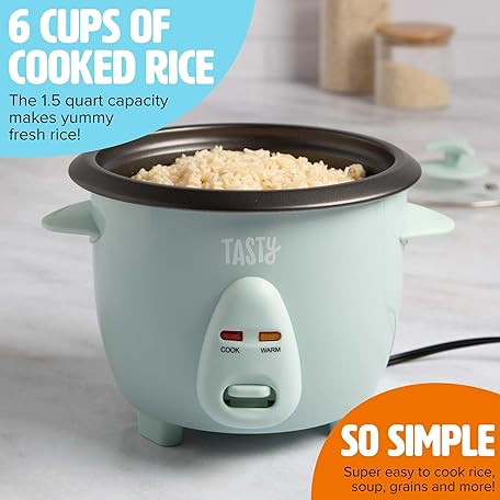 Thông tin sản phẩm Tasty Mini Rice Cooker with Removable Nonstick Bowl and Auto Keep Warm Function, Great For Soups, Stews, Grains and Oats, 6 Cups Cooked (3 Cups Uncooked), 1.5-Quart, Aqua