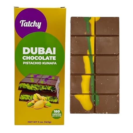 Tatchy Dubai Chocolate Bar, Pistachio Filled Dubai Chocolate Bar, 5oz