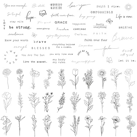 Thông tin sản phẩm TATUWST Realistic Temporary Tattoos - 60 Sheets Tiny Small Removable Tattoos, 30 Pcs Inspirational Quotes Words Tattoos, 30 Pcs Wild Flower Ink Line Botanical Floral Leaf Tattoo Stickers for Women