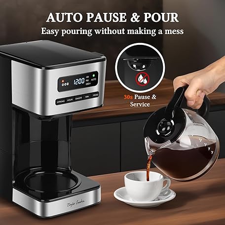 Thông tin sản phẩm Taylor Swoden Programmable Coffee Makers 12 Cup, Hot and Iced Coffee Maker, 4 Brew Strength, LED Display, 24H Timer, Keep Warm&Auto Shutoff- Drip Coffee Machine for Home/Office, Black &Stainless Steel