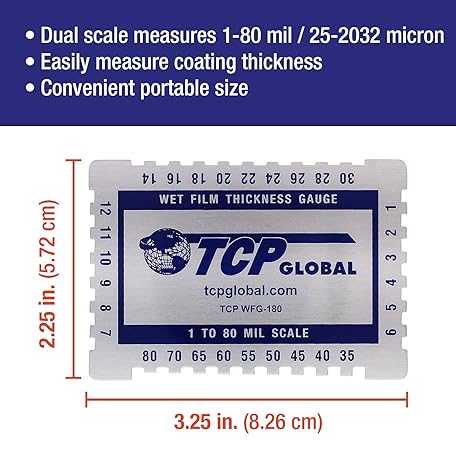 Sản phẩm TCP Global Wet Film Thickness Gauge Comb, 1-80 Mil Scale, Step and notched for Paints Resins đang được bán với giá ưu đãi là $9.7991 tại nước Mỹ.