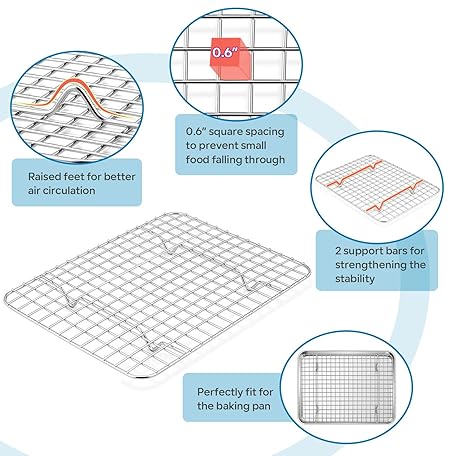 Thông tin sản phẩm TeamFar Baking Tray with Rack, 12.5 x 10 x 1 Inch Stainless Steel Toaster Oven Baking Pan with Grid Rack for Baking Roasting Cooling, Healthy & Heavy-Duty, Oven & Dishwasher Safe, 2pcs