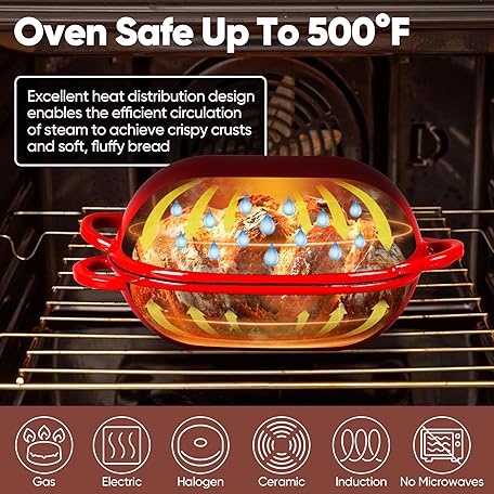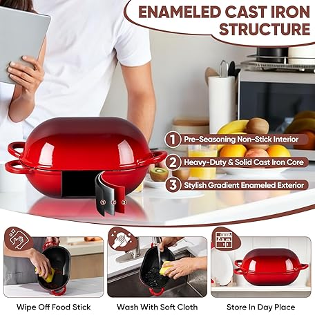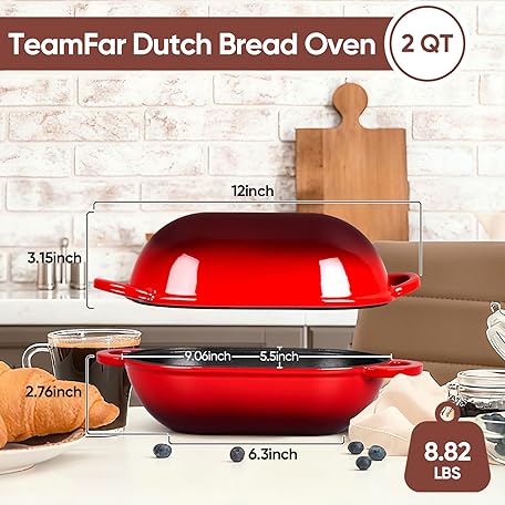 Thông tin sản phẩm TeamFar Enameled Cast Iron Bread Loaf Pan, 2 QT Oval Dutch Oven with Lid for Sourdough Bread Baking, Enameled Meatloaf Loaf Baking Pan with Lid, Even Heat Distribution & Self-Basting, Red