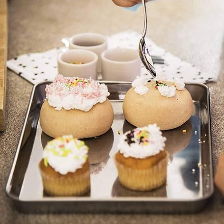TeamFar Toaster Oven Pans, 9.3'' x 7'' x 1'' Stainless Steel Compact Toaster Oven Tray Ovenware, Healthy & Heavy Duty, Roll Edge & Mirror Finish, Easy Clean & Dishwasher Safe-2 PCS