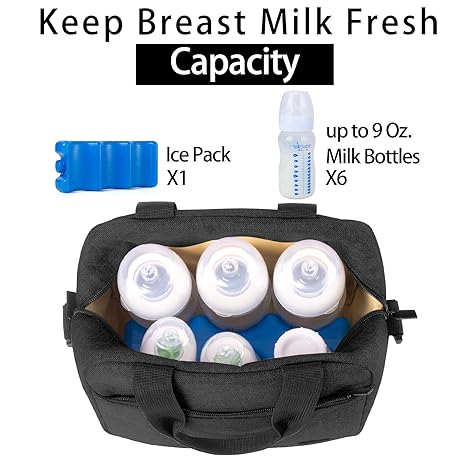 Thông tin sản phẩm Teamoy Breastmilk Cooler Bag with Ice Pack Fits 6 Large Baby Bottle Up to 9 Ounce, Travel Baby Bottle Cooler Bag for Nursing Mom Daycare, Work, Black