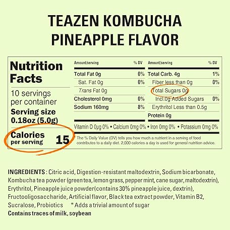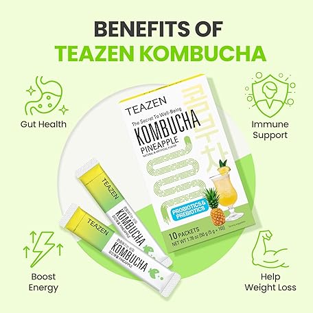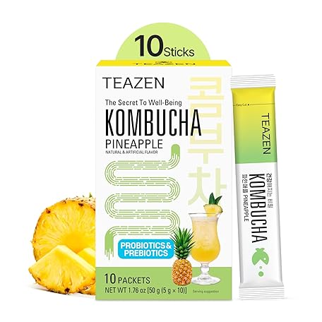 Thông tin sản phẩm TEAZEN Pineapple Kombucha Tea, Hydration Drink Mix, Sugar Free, Live Probiotics & Prebiotics, 10 Sticks, 1.76oz