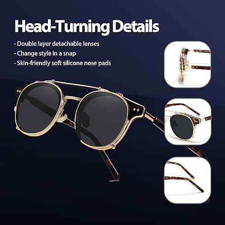 Sản phẩm Technigadgets Pedro Steampunk Double Lens Clip On Men Sunglasses Retro Polarized Double Bridge Metal Frame UV 400 Protection đang được bán với giá ưu đãi là $27.2391 tại nước Mỹ.