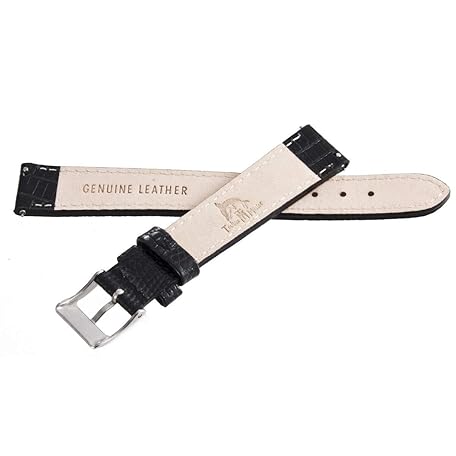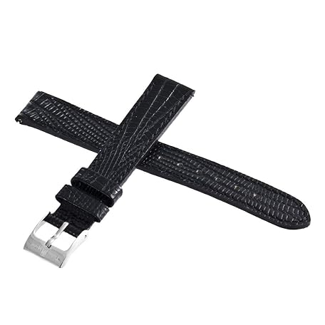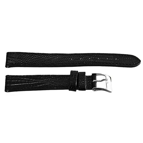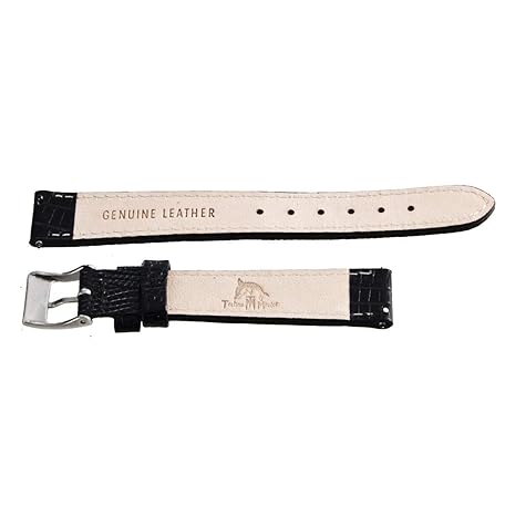 Techno Master Genuine 16mm Black Leather Stainless Steel Buckle Watch Band Strap