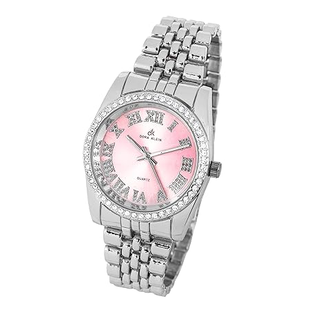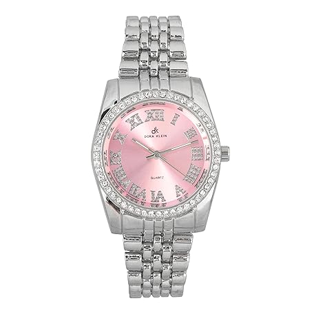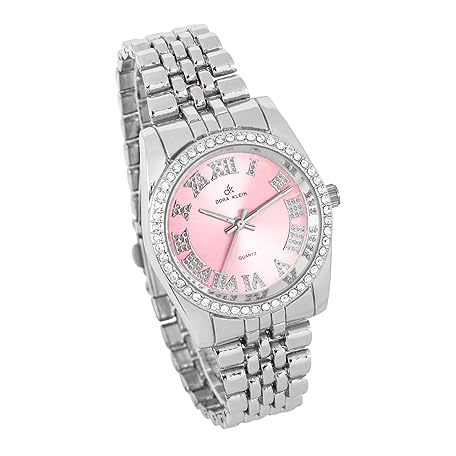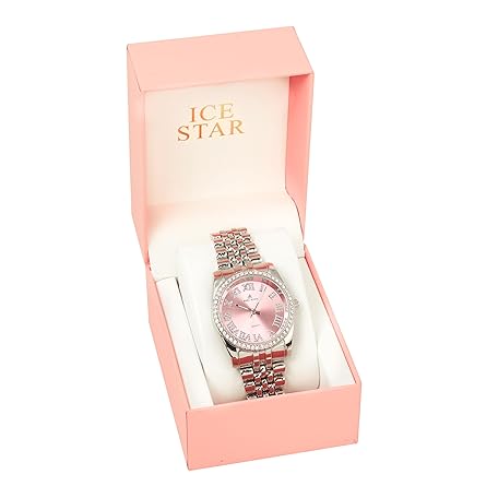 Techno Pave Ladies Luxury Watch with Iced Diamonds & Roman Dial - Quartz Movement, Metal Band