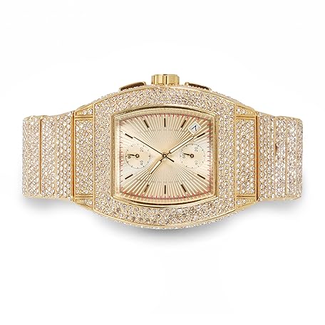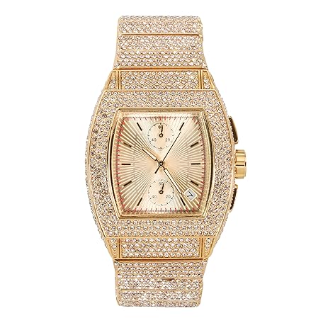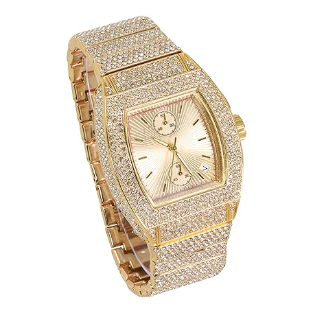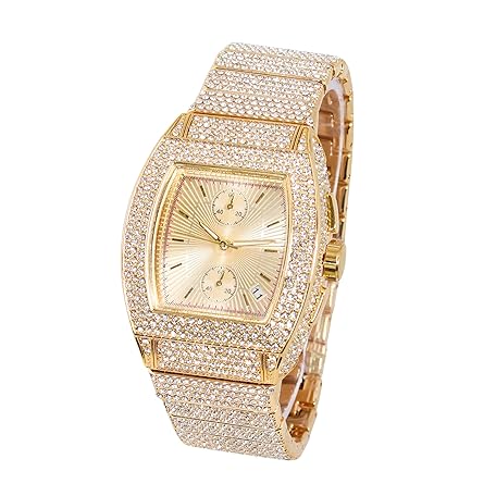 Techno Pave Men's 39mm Iced Out Tonneau Watch - Luxury Hip-Hop Style, Quartz Movement