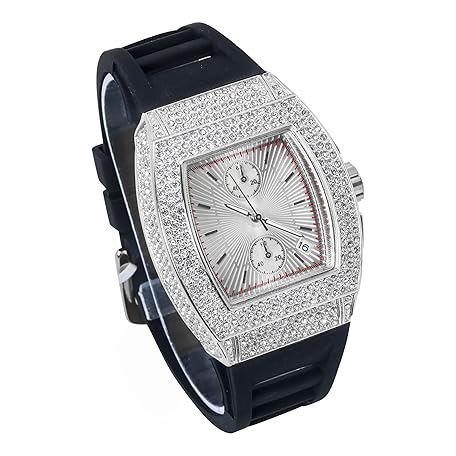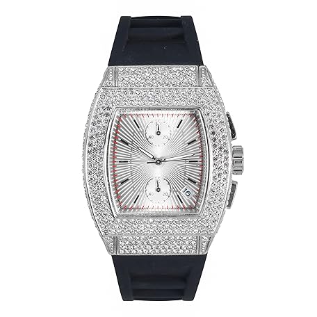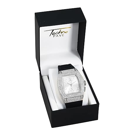 Techno Pave Men's 39mm Iced Out Tonneau Watch - Luxury Hip-Hop Style, Quartz Movement, Silicone Band