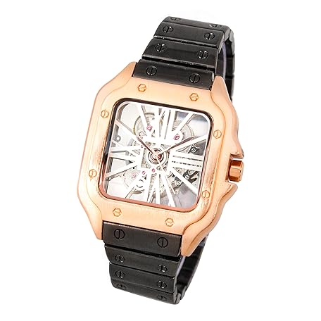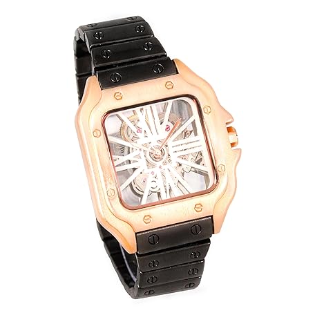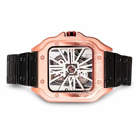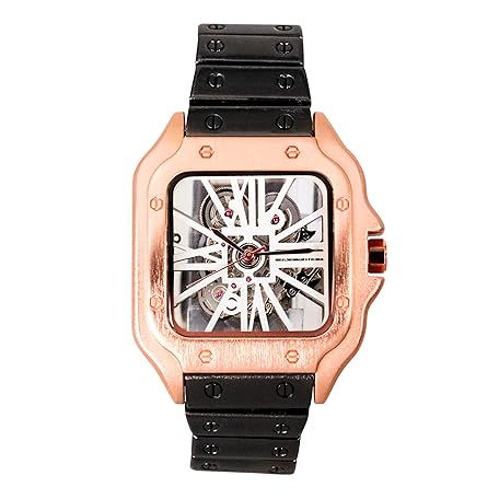 Techno Pave Men's 40mm Iced Out Square Metal Band Watch – Quartz Movement, Skeleton Dial