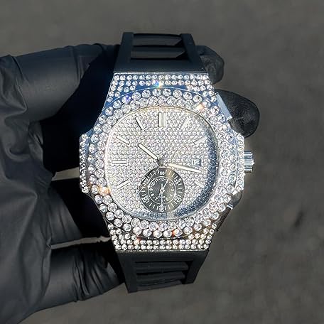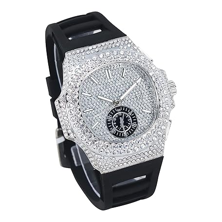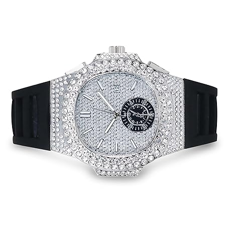 Techno Pave Men's 43mm Silicone Band Watch - Iced Out Oblong Bezel - Quartz Movement