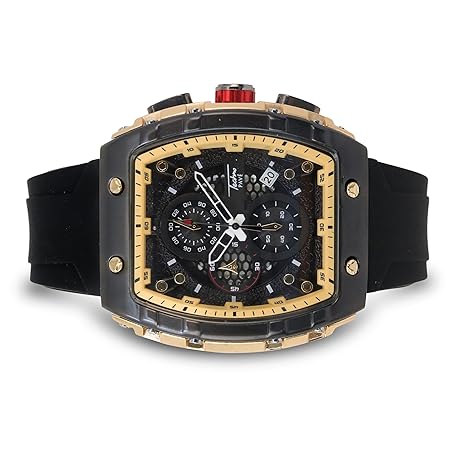 Techno Pave Men’s 46mm Tonneau Watch – Multi Dial with Bold Design, Silicone Strap & Date Display – Luxury Hip Hop Timepiece